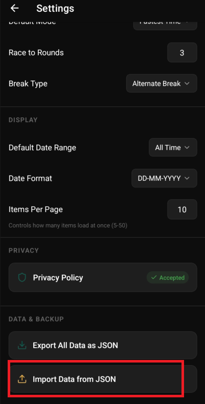 Note: For backup purposes you can use the ‘Export All Data As JSON’. This will export all games.